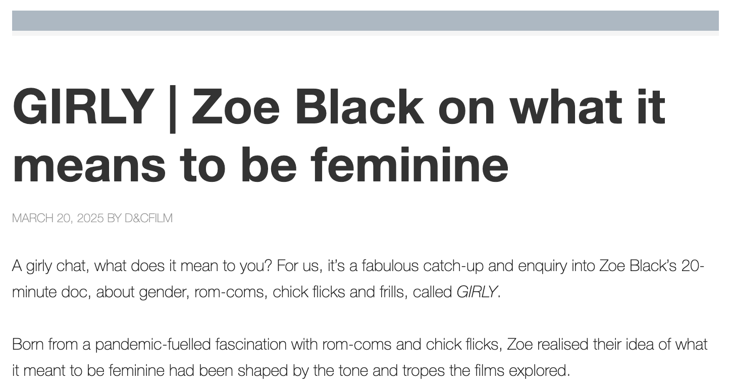20th March 2025 D&CFilm interview on GIRLY and what it means to be feminine.